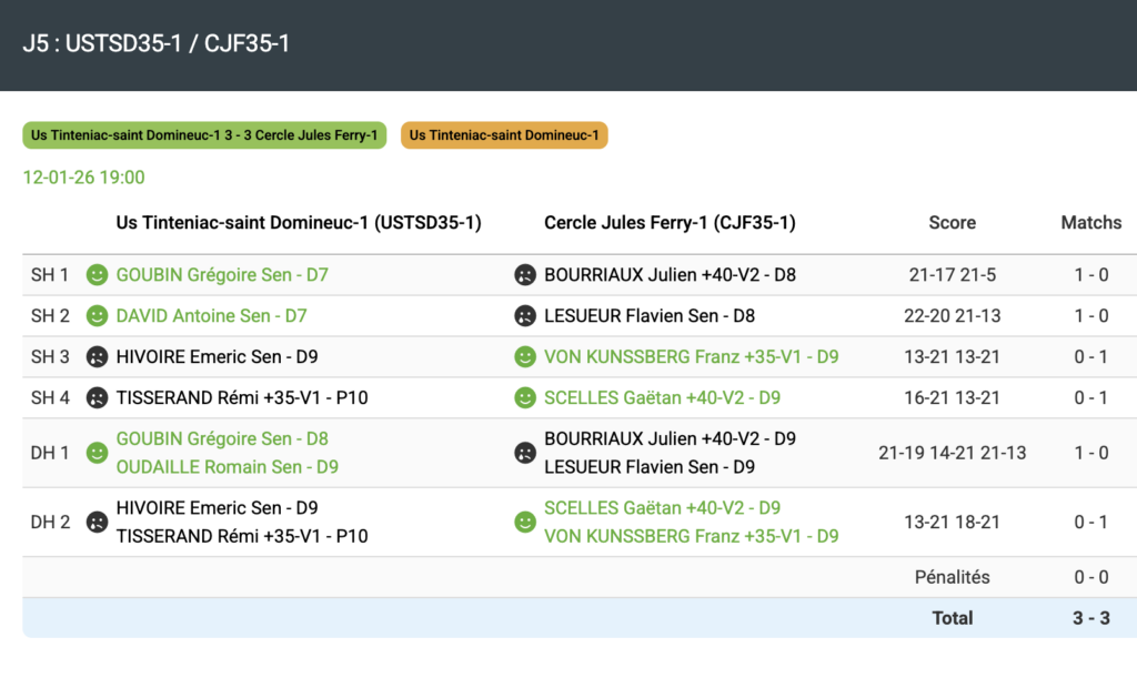 Interclubs Homme D1 Saison 2025-2026 Composition de l’équipe Julien BOURRIAUX (capitaine) Mathieu GALLARD Flavien LESUEUR Gaëtan SCELLES Vincent VETIER Franz VON KUNSSBERG